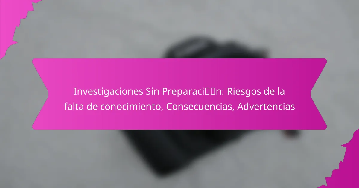 Las investigaciones sin preparación conllevan riesgos significativos que pueden afectar tanto la calidad de los resultados como la integridad del proceso. La falta de conocimiento puede llevar a decisiones erróneas, lo que a su vez puede tener consecuencias graves en diversas áreas.